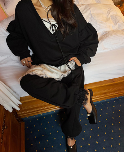 소매는 볼륨감 있는 퍼프 디자인으로 포인트를 주었고,