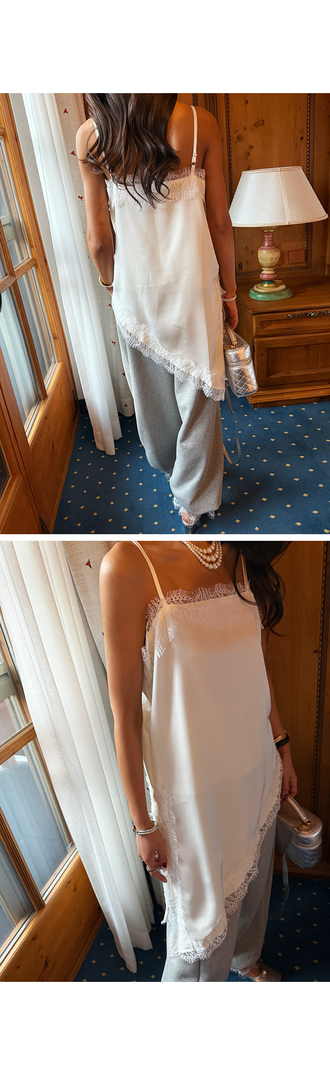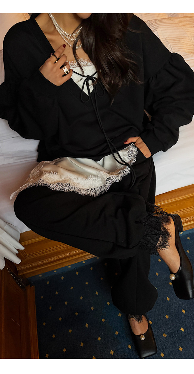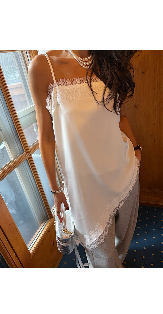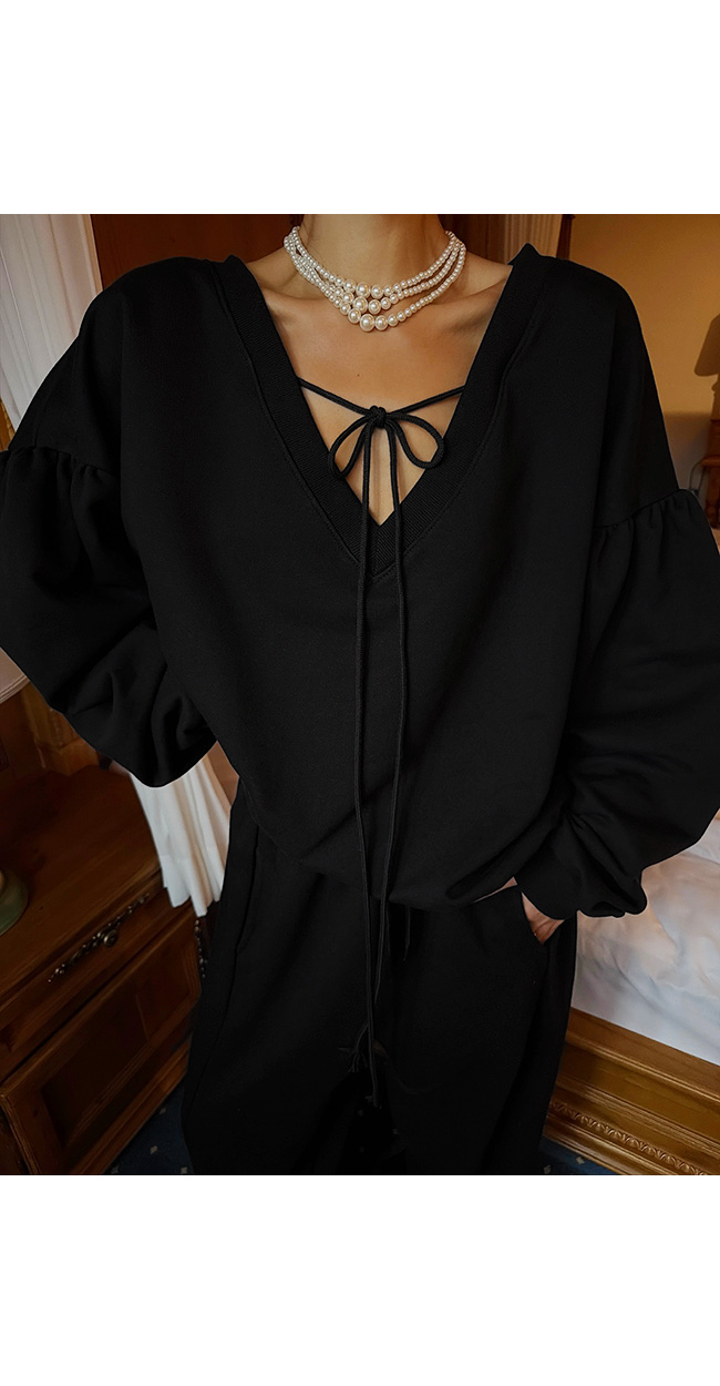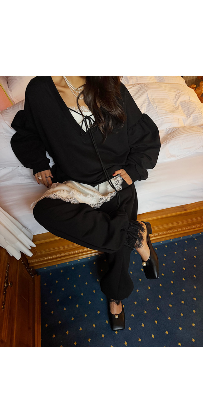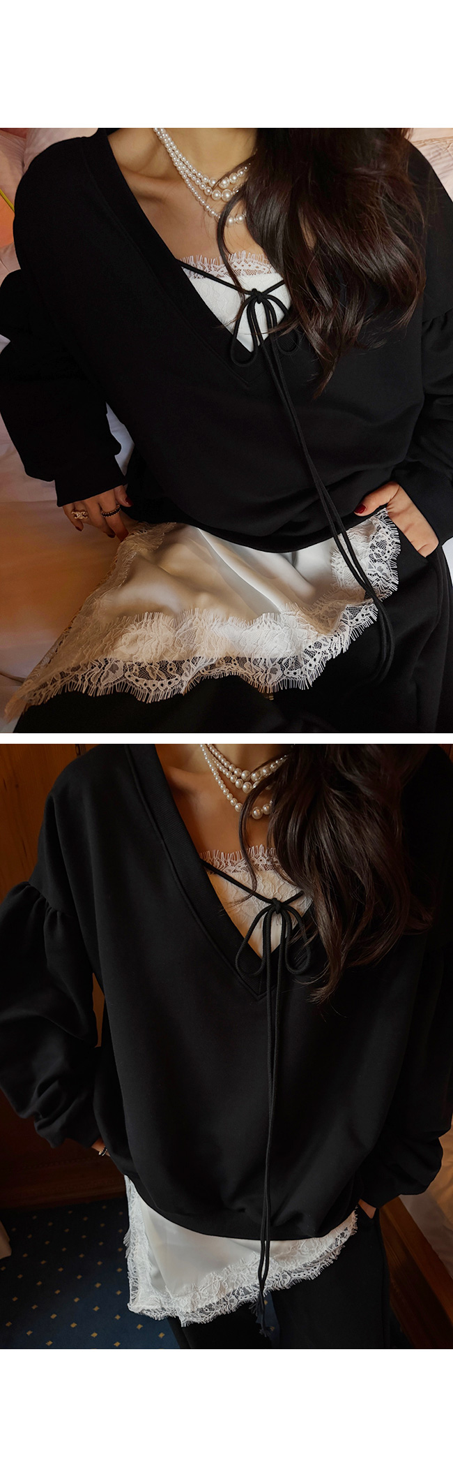 깊은 브이넥 라인에 스트랩 디테일을 더해