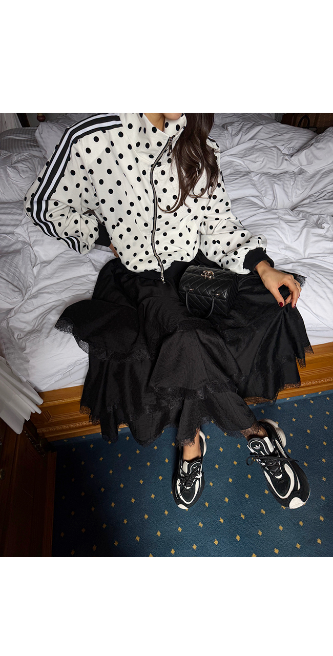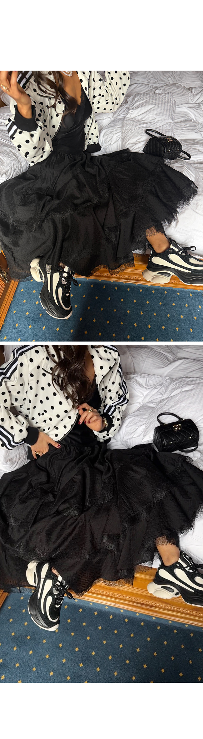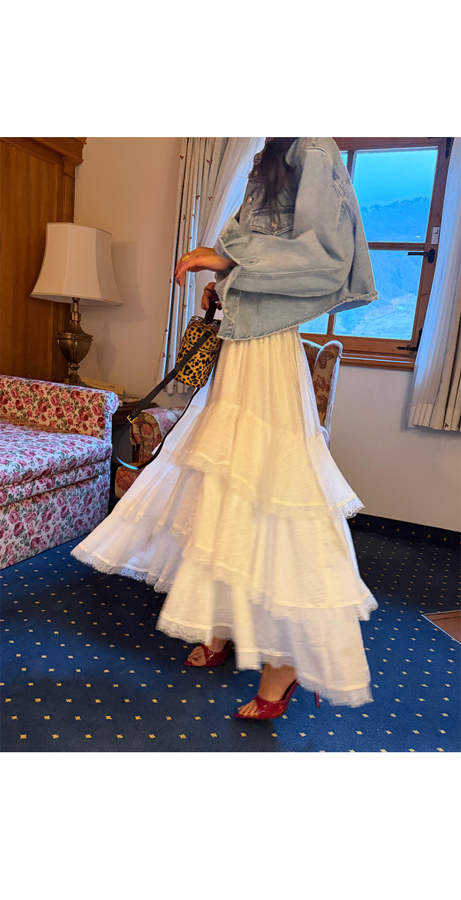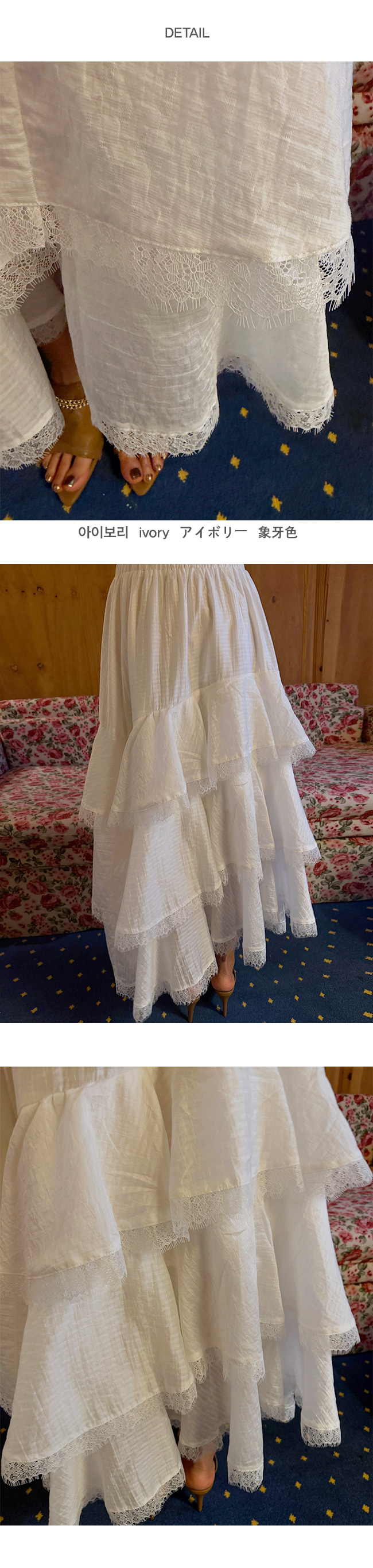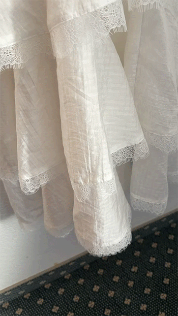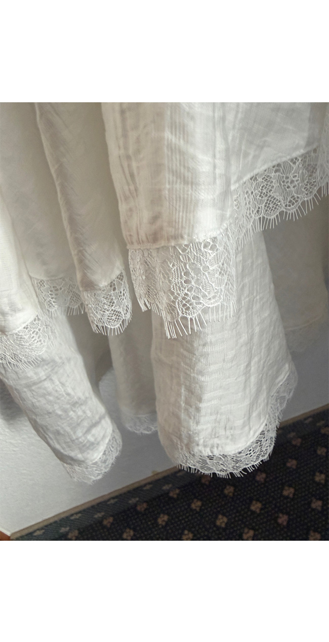 단마다 더해진 프릴 디테일과 레이스 마감이