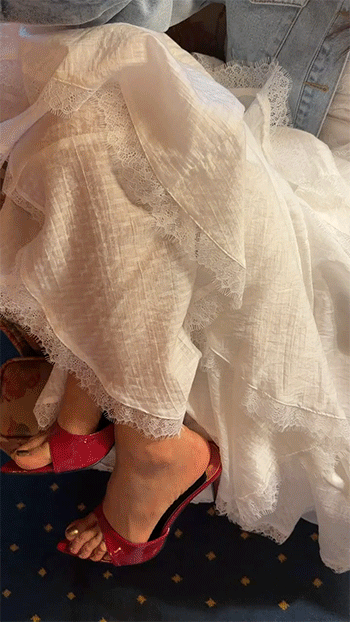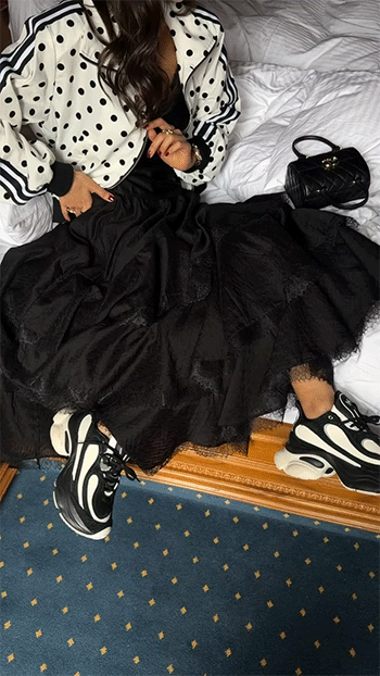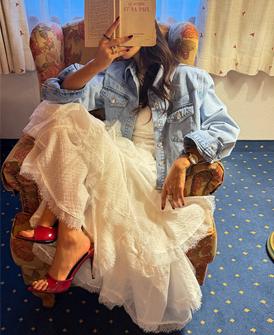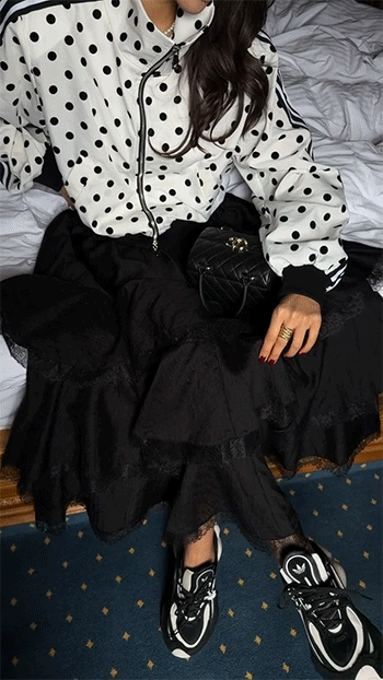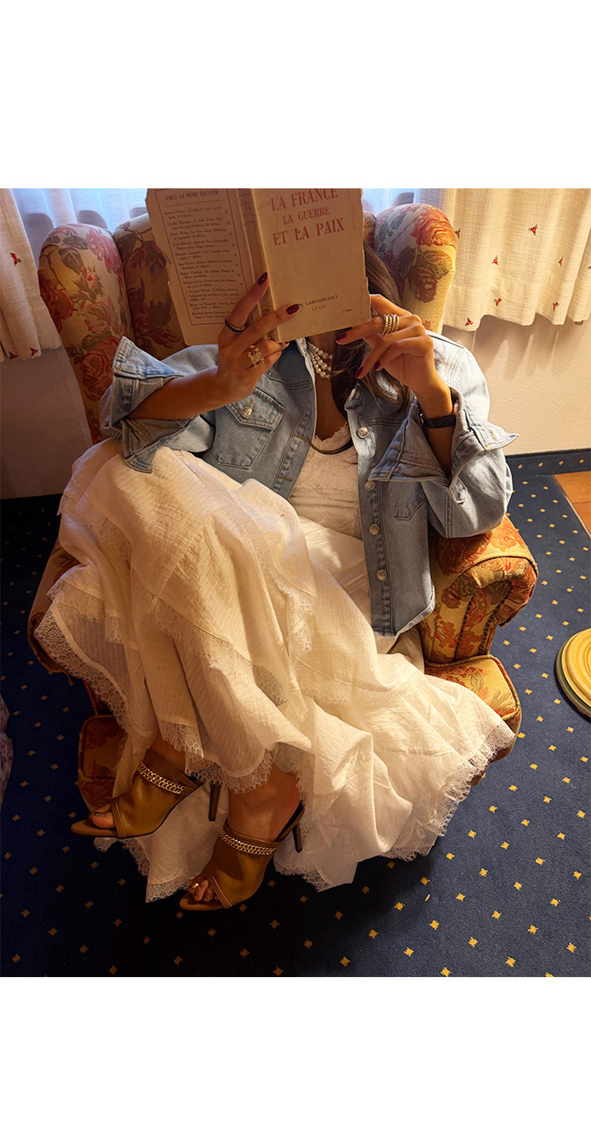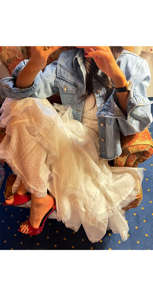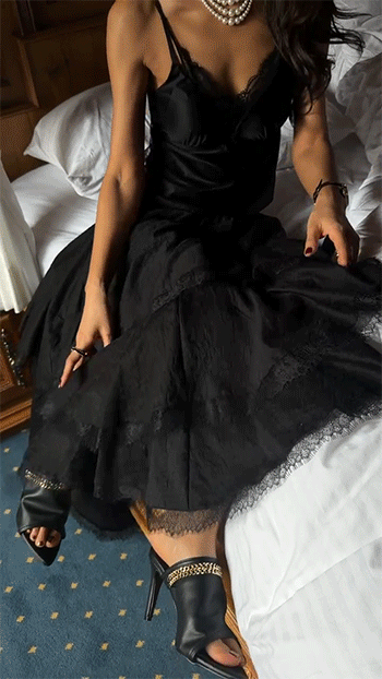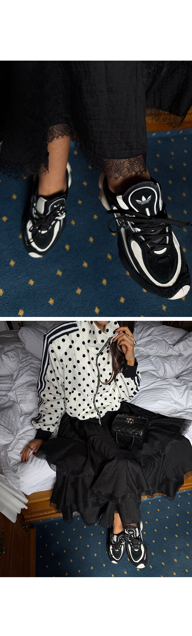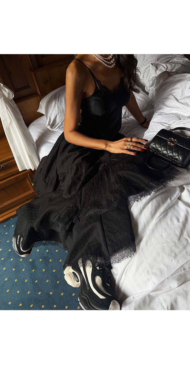 단마다 더해진 프릴 디테일과 레이스 마감이