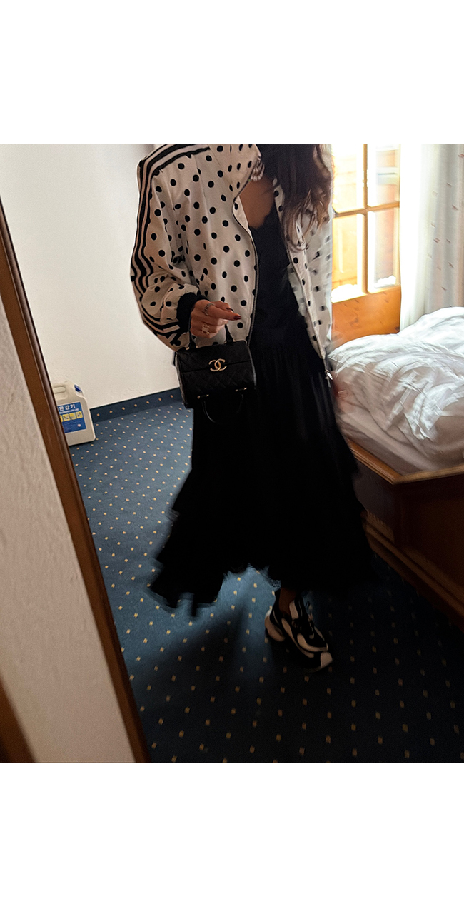블라우스나 자켓과는 더욱 페미닌하게 연출되어