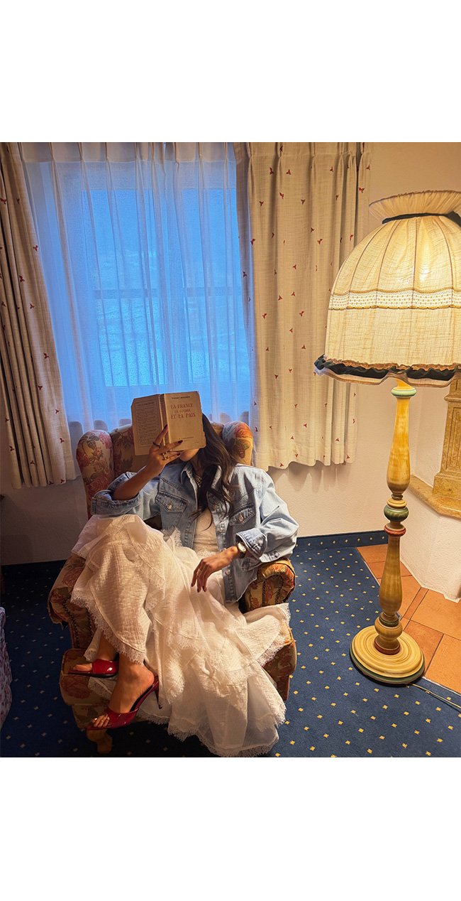 가볍고 은은한 텍스처의 소재를 여러 겹 레이어드해