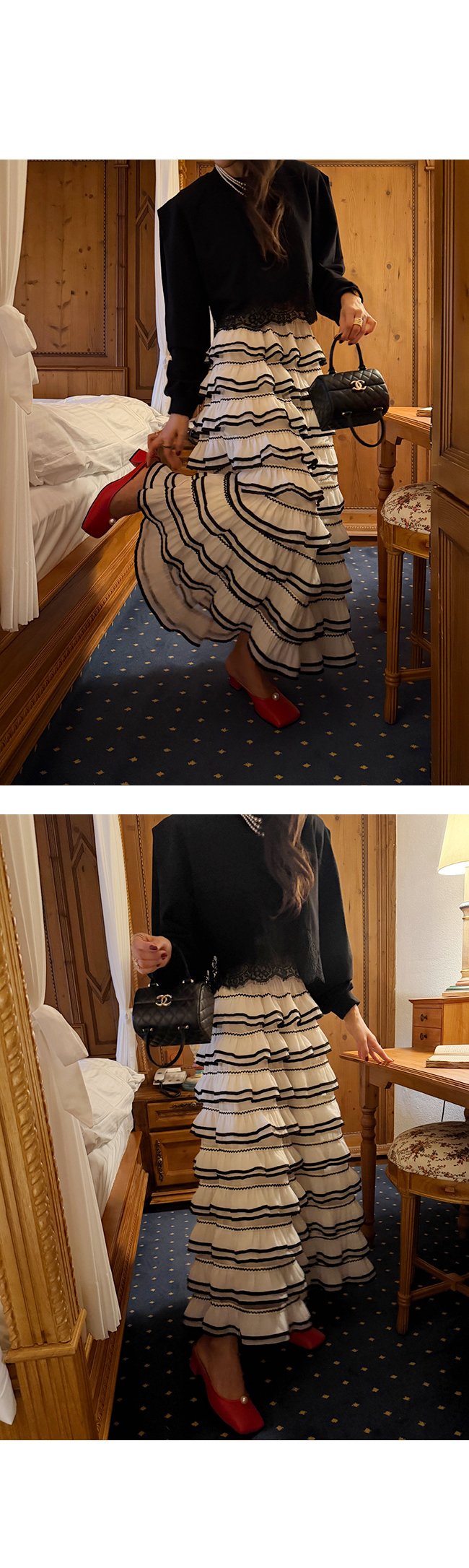 여러 단의 캉캉 디테일을 더해