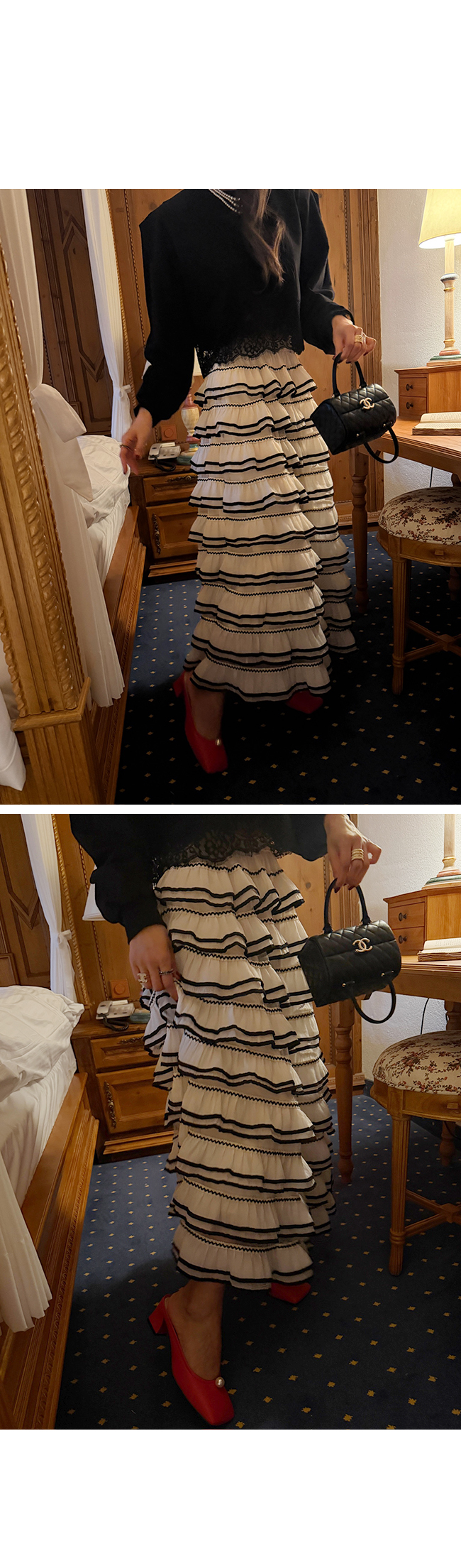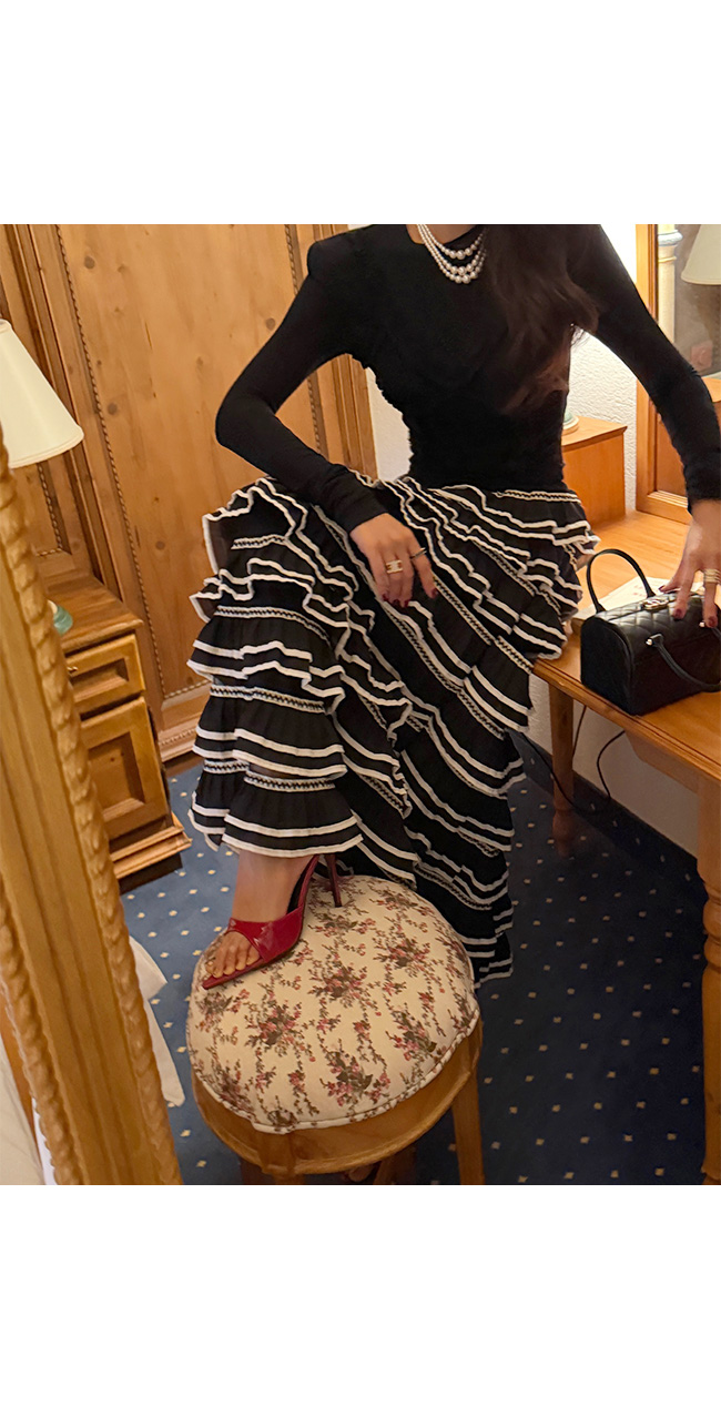 고급스럽고 페미닌한 무드의 캉캉 스커트로 추천드려요.