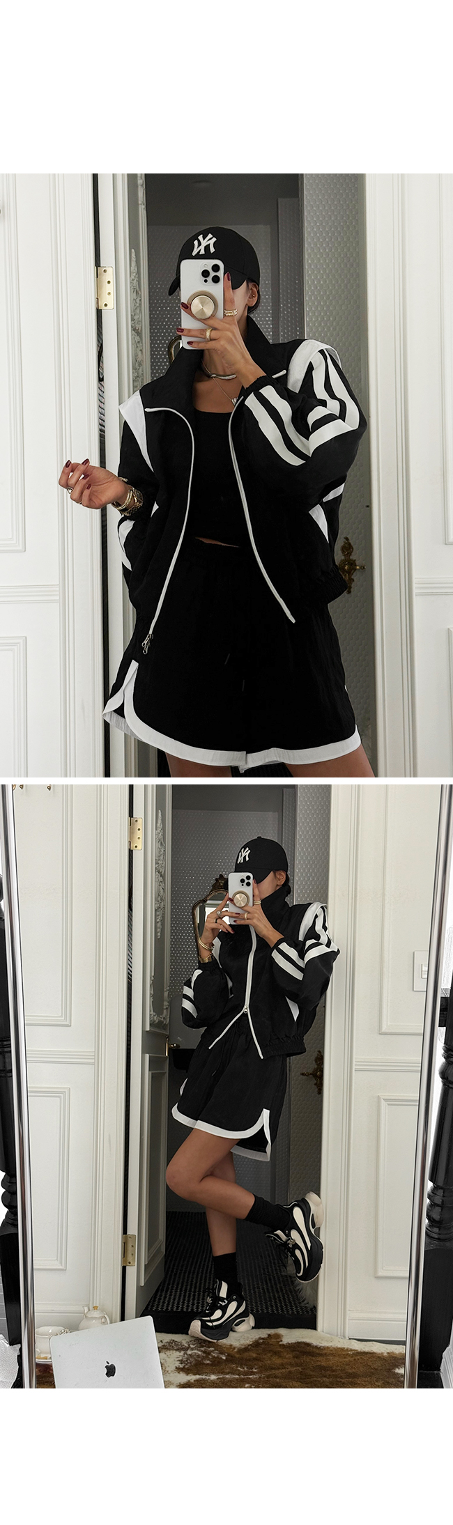 단독으로는 물론 동일한 집업과 함께 셋업으로 착용 시