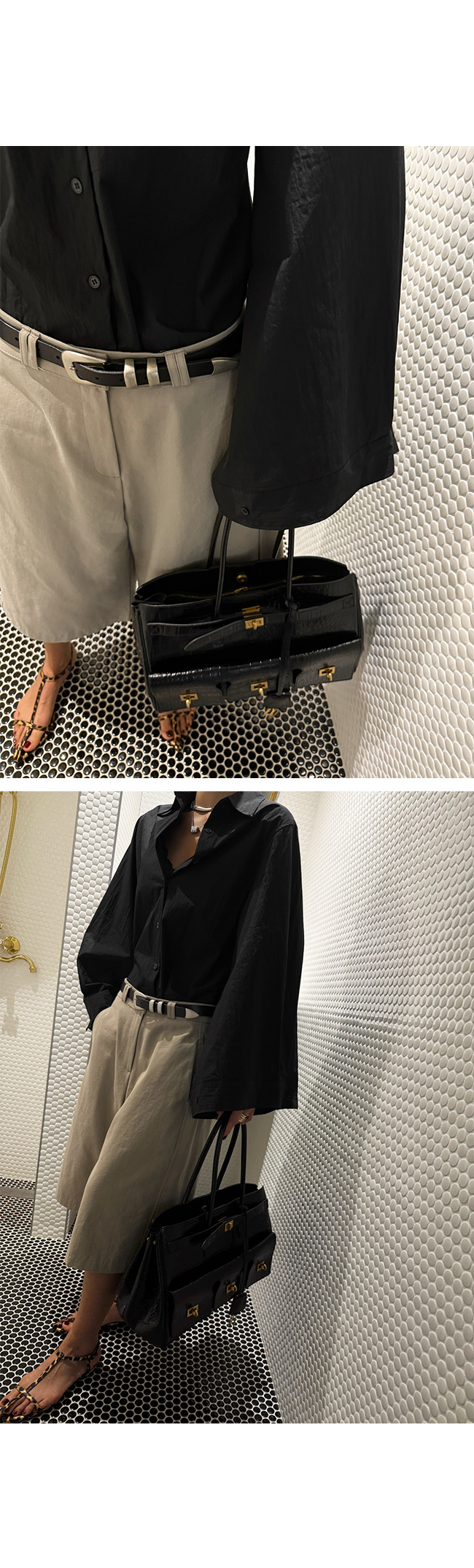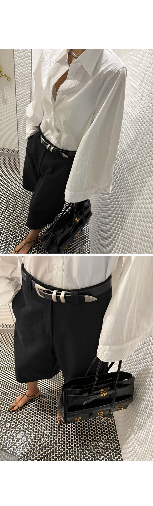 흐트러짐 없이 깔끔하게 떨어지는 실루엣이 돋보이며,