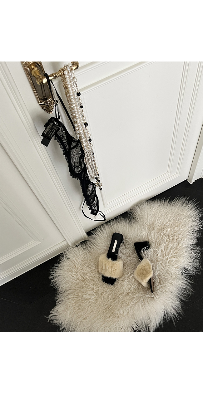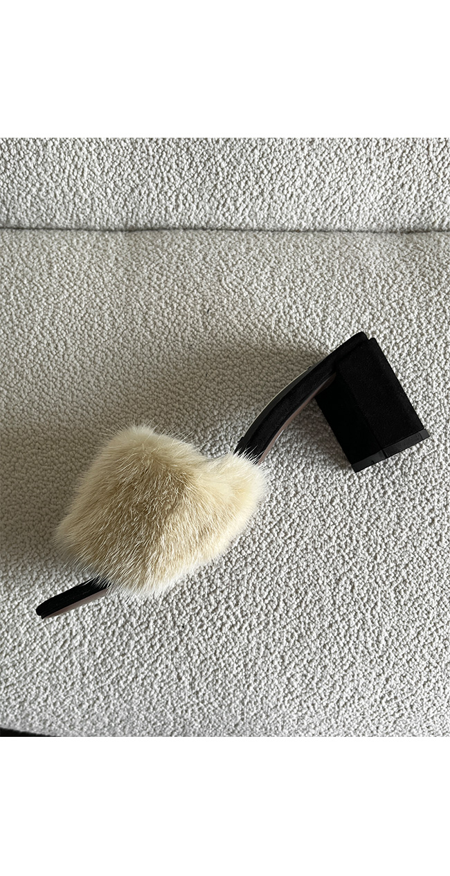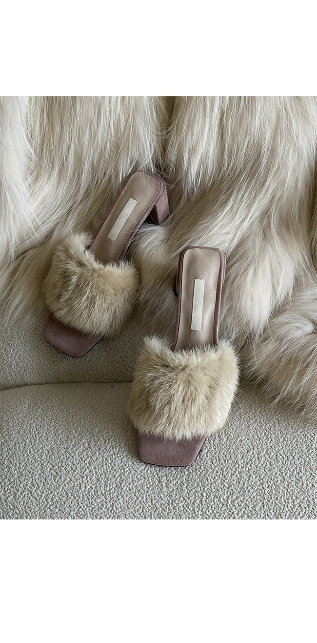-포근함과 고급스러운 무드의 스웨이드 밍크 뮬